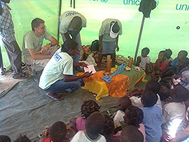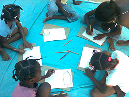 Insgesamt 7 Wochen lang arbeitete ich 2010 im Team in Straßencamps und Waisenhäusern mit Kindern in und um Port au Prince nach der Erdbebenkatastrophe, in 2011 und 2012 fanden weitere Einsätze statt. Da die meisten Schulen und Kindergärten in Haiti eingestürzt, oder zumindest schwer beschädigt waren, lebten die Kinder über ein halbes Jahr ohne verlässliche Strukturen in einer Zeit, wo ihre Eltern, das rein leibliche Überleben sichern mussten. Es galt dem Hungertod zu entkommen, Trinkwasser zu sichern, eine Zeltplane zu